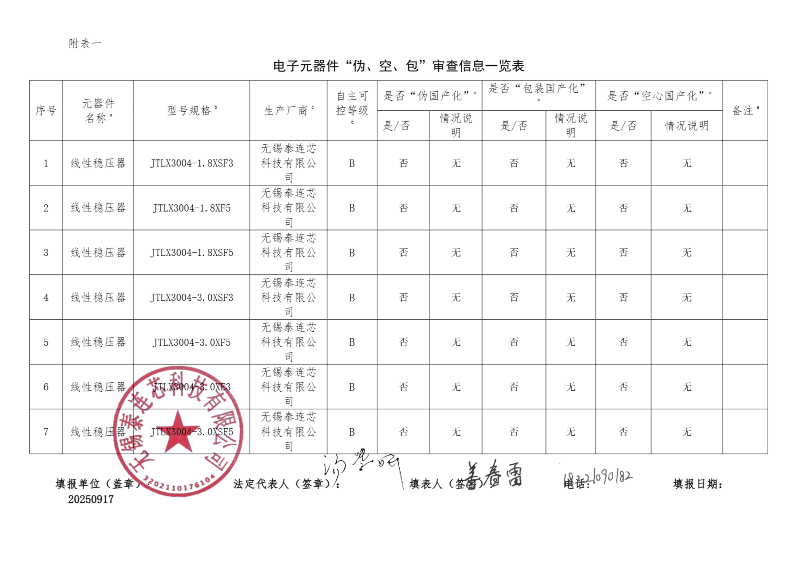 自查承诺书-TLX3007