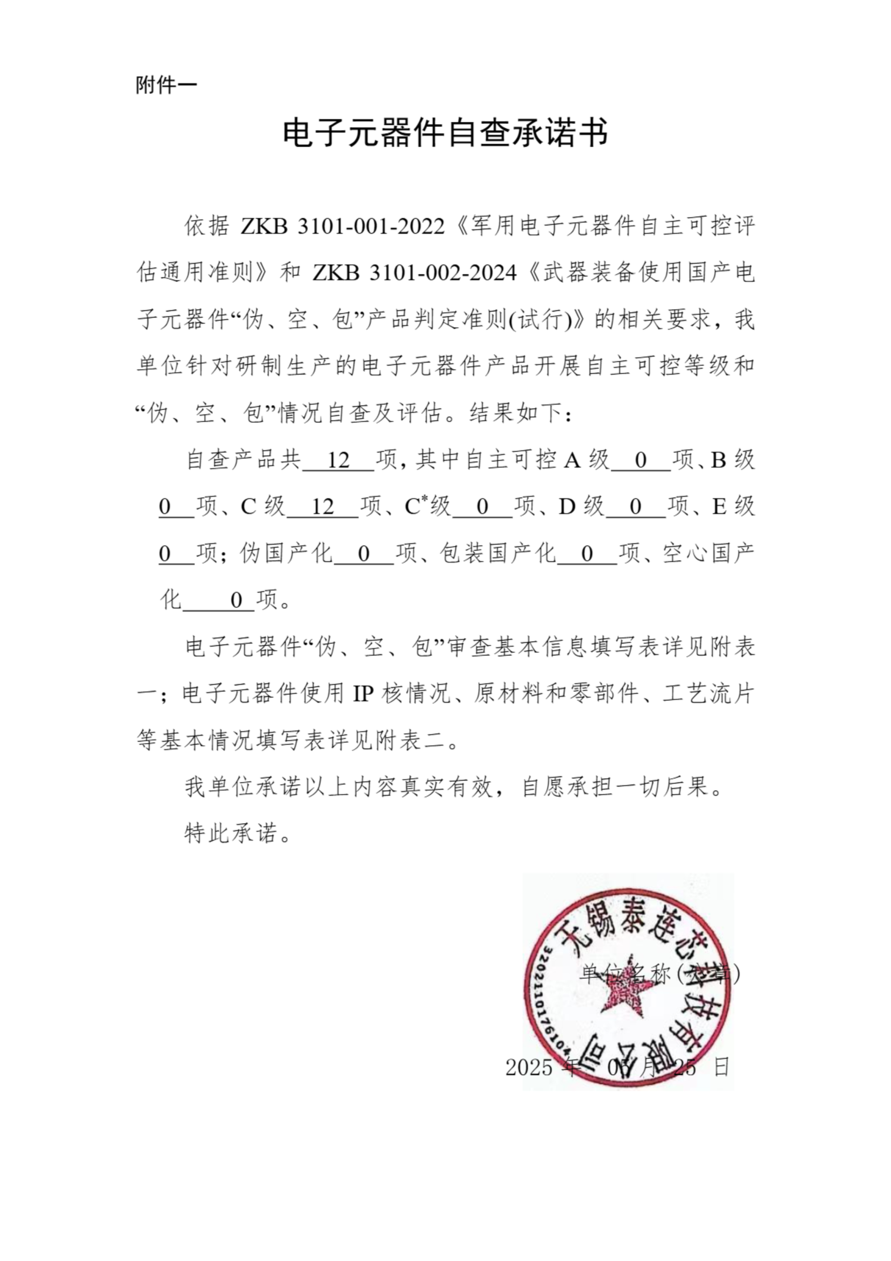 自查承诺书-TLX34XX-基准