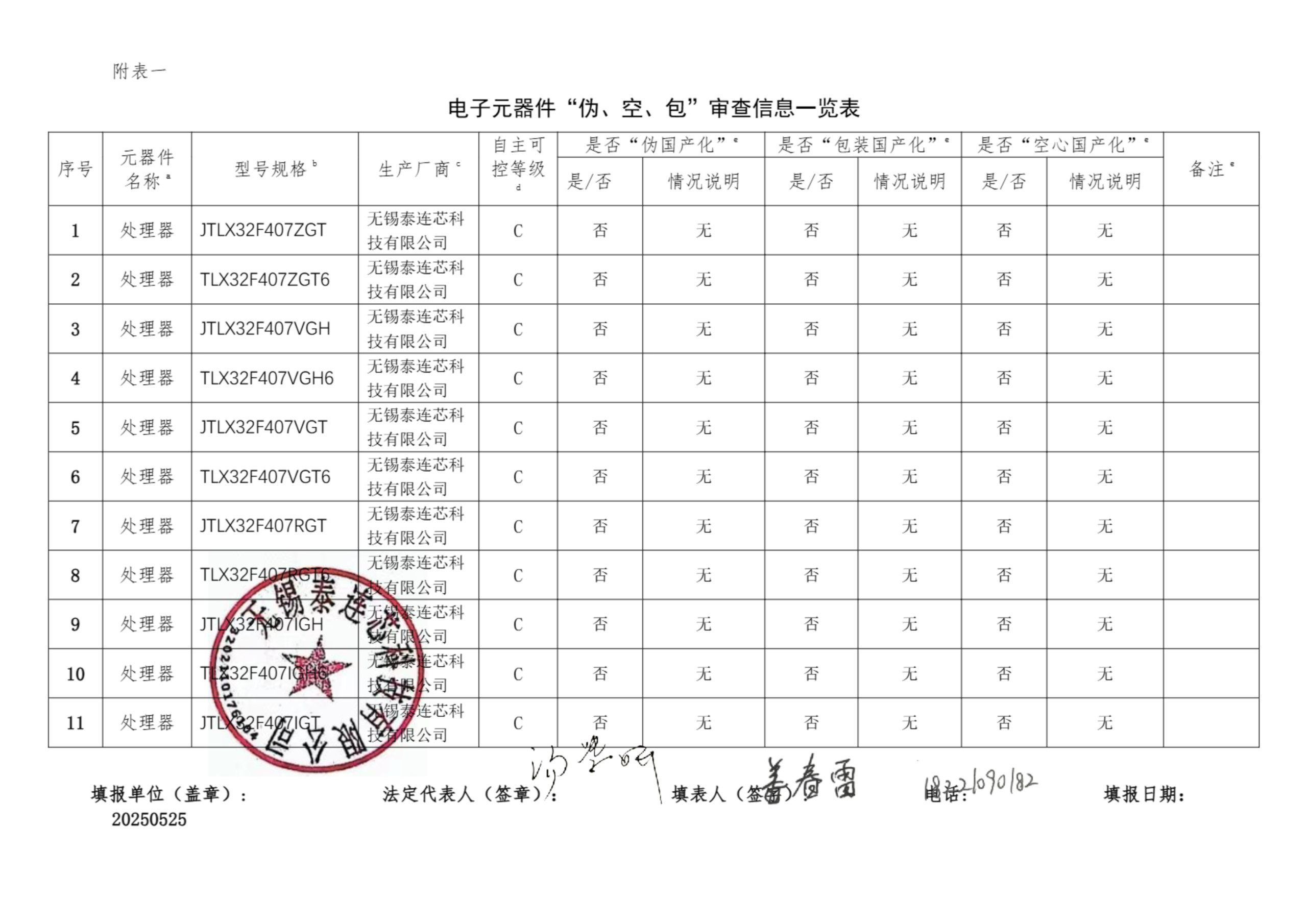 自查承诺书-TLX32F407XG