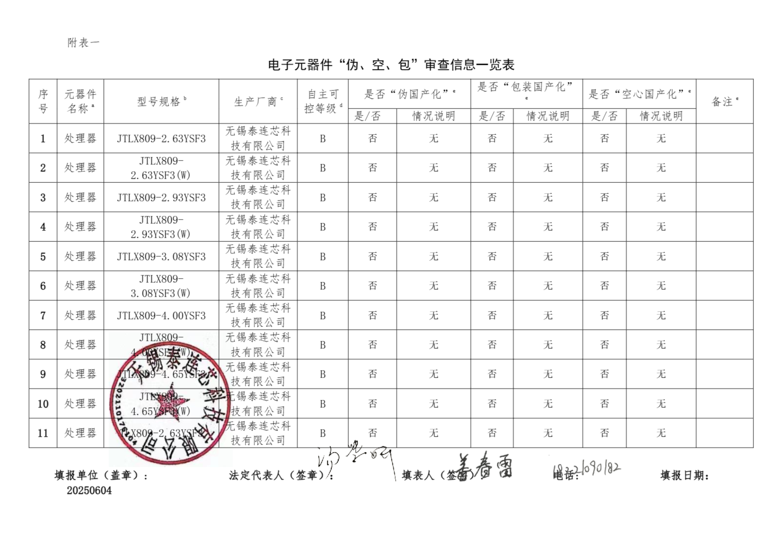 自查承诺书-TLX809