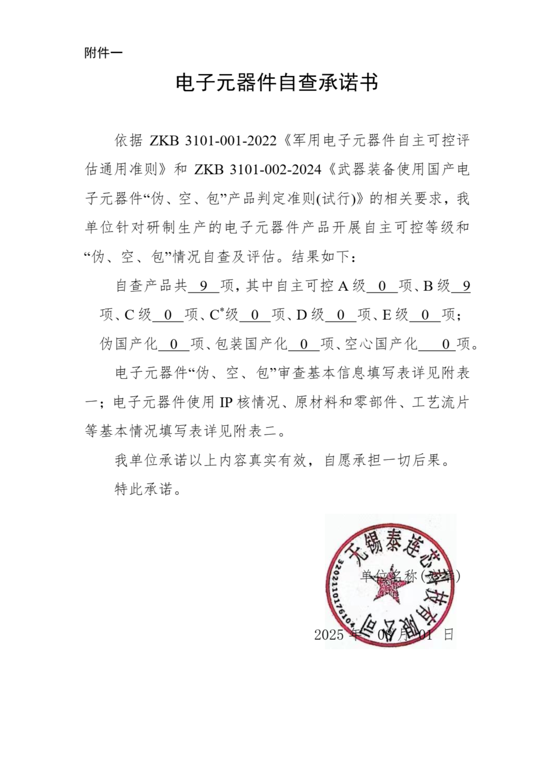 自查承诺书-TLX842X