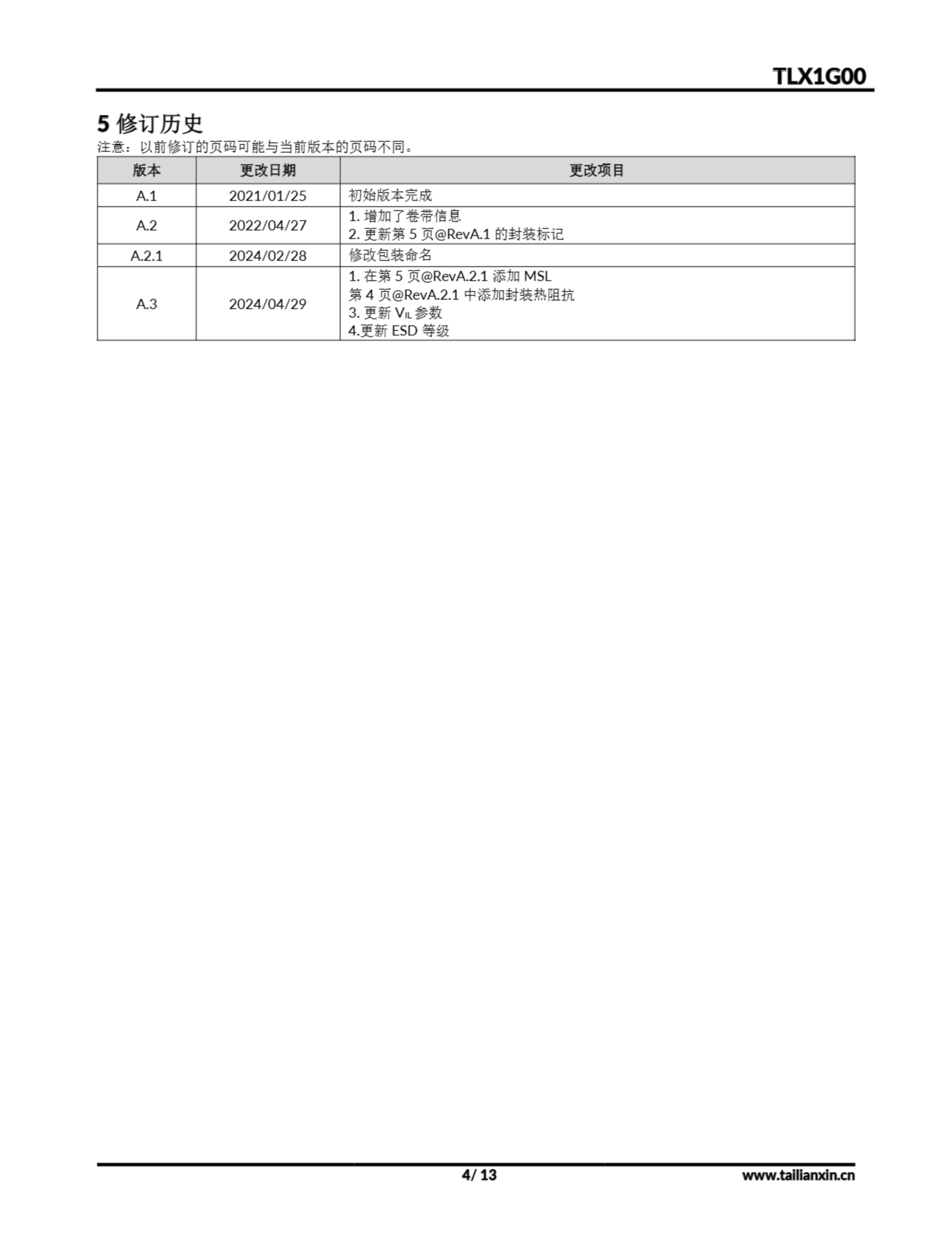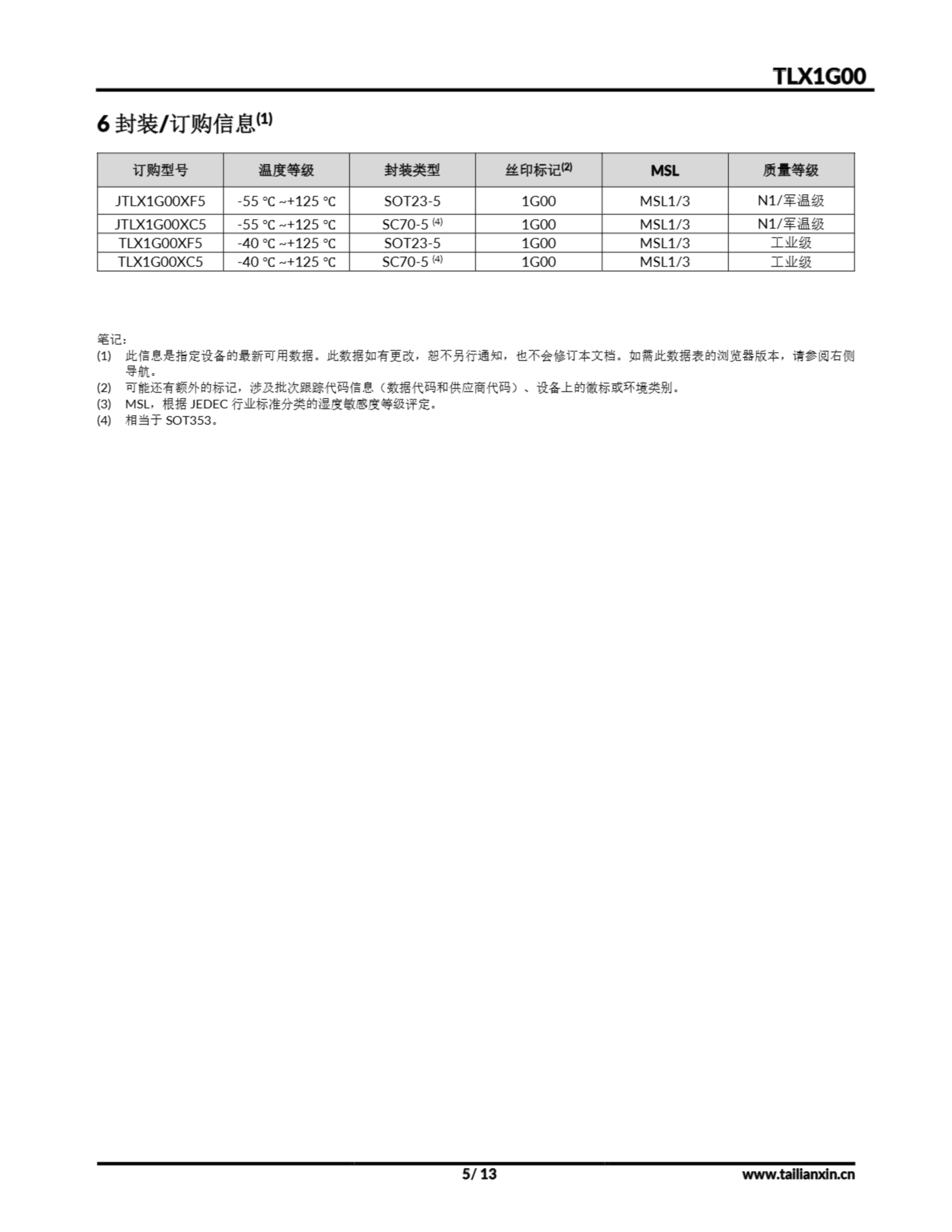 TLX1G00-产品手册