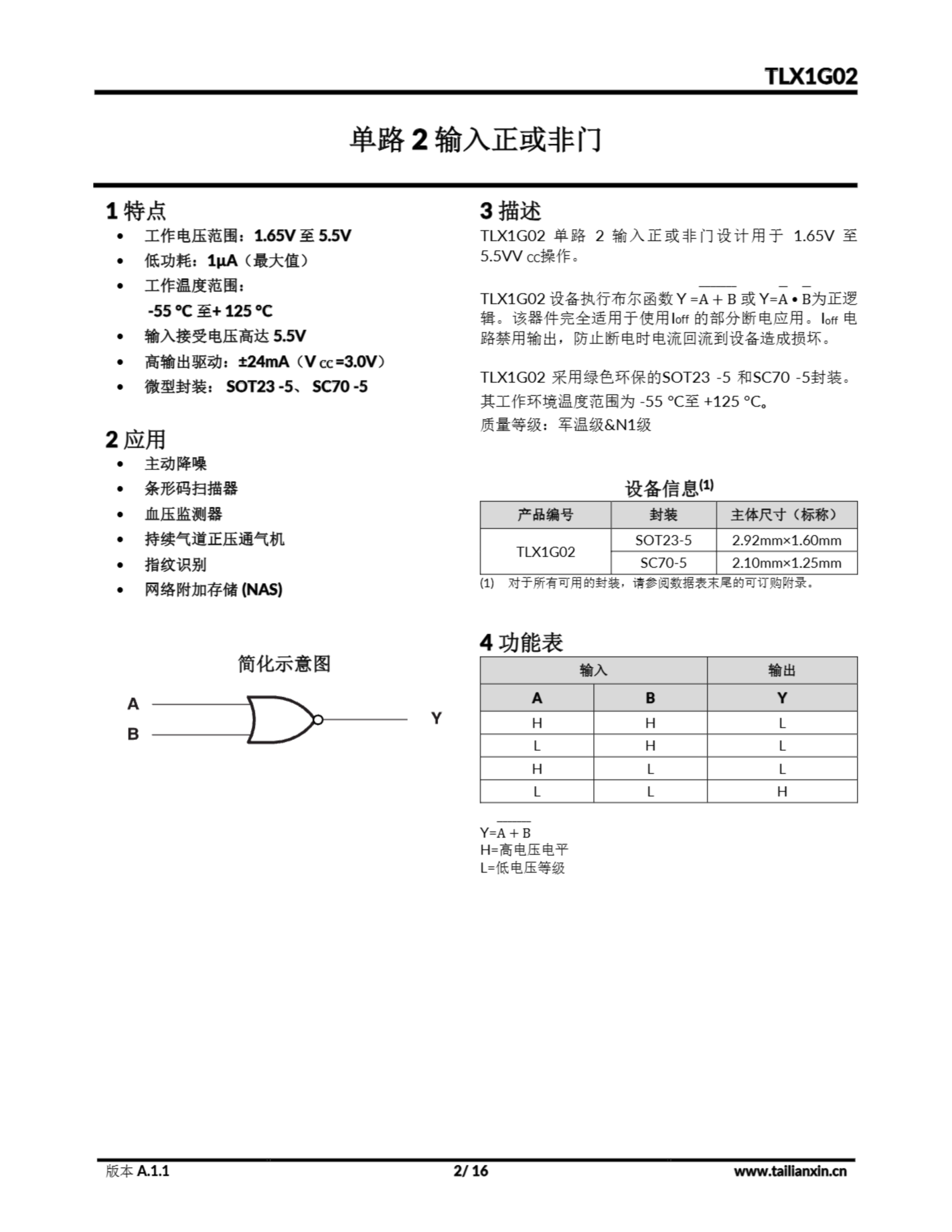 TLX1G00-产品手册