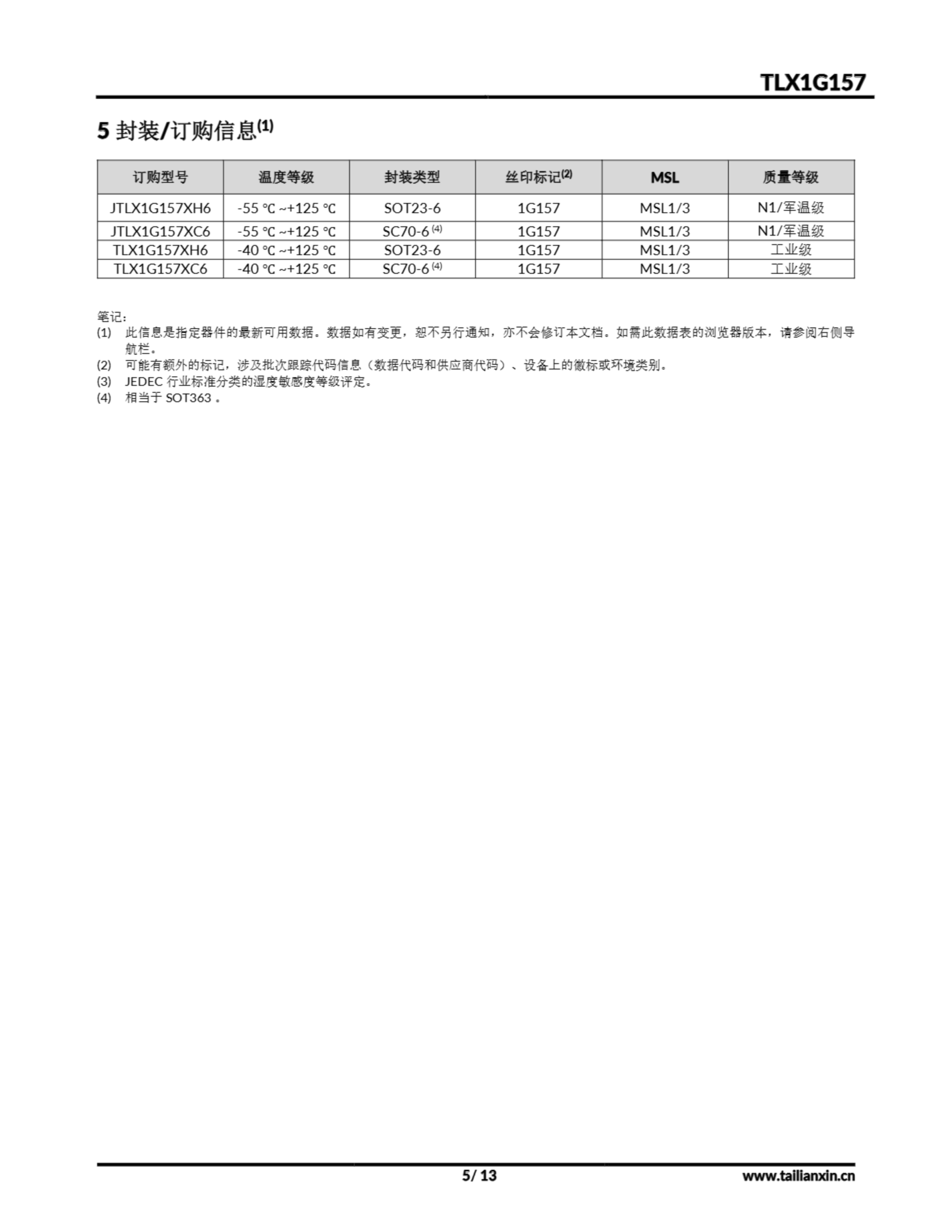 TLX1G157-产品手册